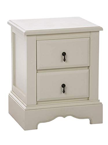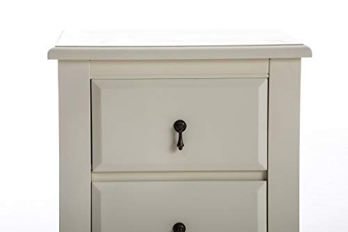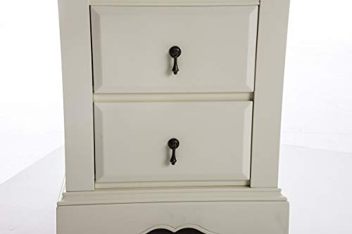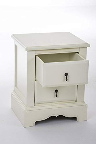 CLP Comodino Shabby Chic Isabella per Camera da Letto | Comodino Letto a Muro, in MDF e Legno di Pino | Comodino con 2 Cassetti dotate di Maniglie in Metallo | Comodino in Legno Color Crema