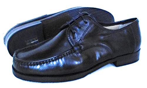 Le comodone Mocassino Allacciato da Uomo in Pelle, Suola in Cuoio con Mezza piantella di Gomma, Tacco di 2 Centimetri, Ampia Calzata, Numero 48.