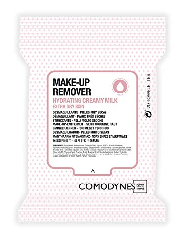 Comodynes Salviette Struccanti con Latte Detergente Idratante, Salviette per Viso e Occhi per Pelli Sensibili, Fibre 100% Naturali e Biodegradabili, Pack da 20 Salviette