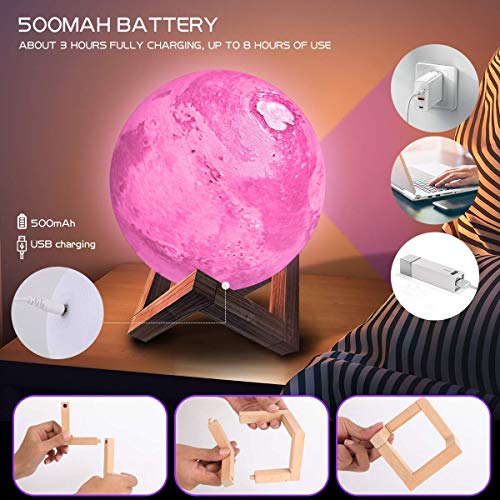 【USB Ricaricabile】 lampada Marte 15 cm è dotato di un cavo di ricarica USB, che può essere caricato con un caricabatterie per auto, alimentatore mobile e computer. La batteria da 500 mAh aggiornata può essere caricata completamente in 3,5 ore e può durare fino a 8 ore.