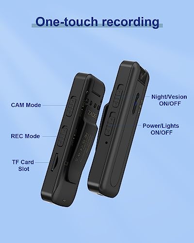 ZAQE Compact Body Camera, microcamera 1080P, videoregistratore portatile da 64G con visione notturna, registrazione in loop per la registrazione di audio video e riunioni in ufficio