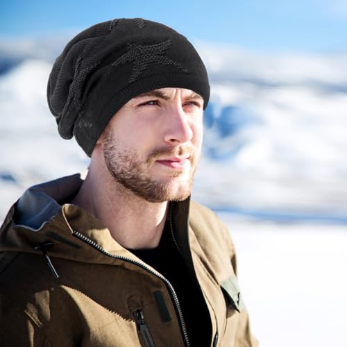 Compagno caldo berretto modello di stella foderato invernale beanie design in maglia grezza, Colore:Rosso scuro nero