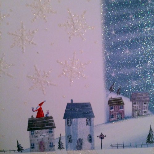 The Card Company - Confezione di 4 biglietti "Starlight Scenes" con motivi diversi a tema neve e feste natalizie, formato quadrato, decorati con glitter, completi di buste