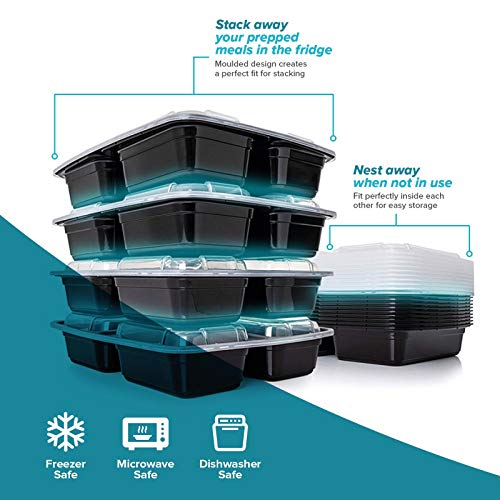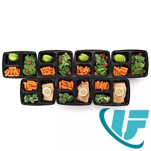10 Pack 3 Compartment Tupperware. BPA Free Meal Prep Food Storage Container with Lids. Disposable Japanese Bento Healthy Portion Plastic Lunchbox and Take Away. Microwave and Dishwasher Safe.