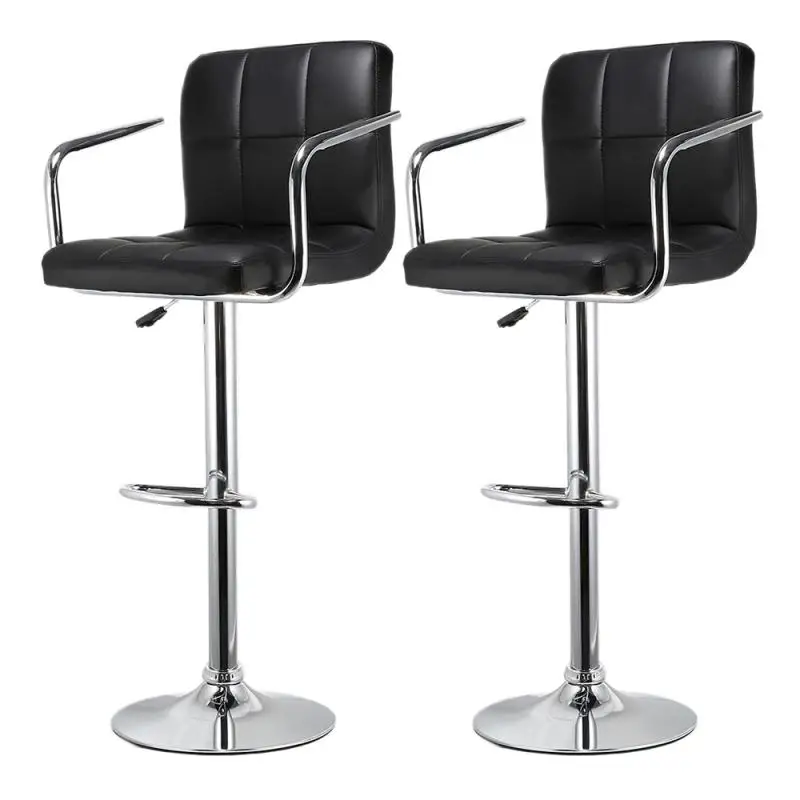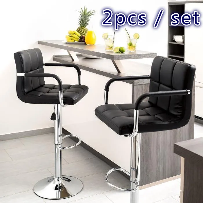 2PCS 6 Compartment Upholstered Bar Chair Galvanized Steel With Adjustable Armrest Barstool Home Kitchen 360°Swivel Seat Top HWC