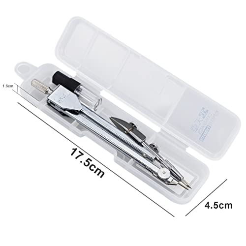 Set con Compasso 3 Pezzi Metallo Bussola Geometrica Set, Compasso Set Compasso di Disegno Set Include Compasso, Mina di Matita, Scatola Trasparente, Ideale per Disegno Tecnico