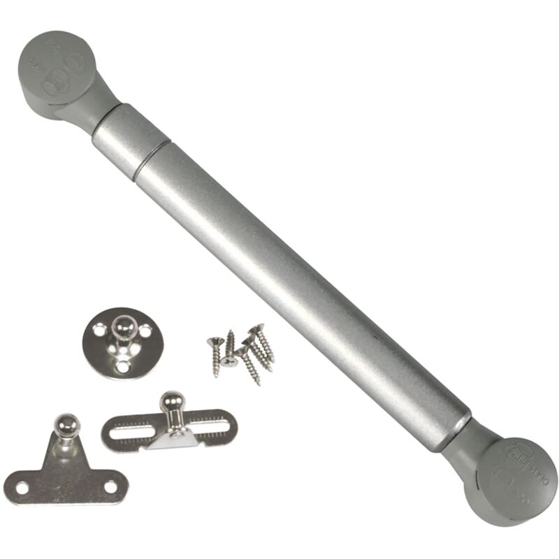 Compasso a gas per porte apribili di mobili con funzione di apertura discendente. La lama è posizionata a 80°, 90° o a 100° a seconda delle dimensioni e del peso della stessa. Dimensioni: 247 x 15 mm. Resistenza di carico: 12 kg. Sono incluse staffe di fissaggio per legno e alluminio. Installazione facile e veloce. Questo ammortizzatore a gas aiuta ad aprire le porte dei mobili verso il basso in modo delicato e silenzioso, riducendo l'impatto e prolungando la durata degli stessi. Ideale per organizzare mobili o armadi della cucina, bagno, soggiorno o qualsiasi altra stanza.