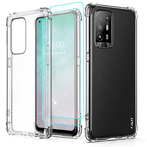 J&D Compatibile per Oppo A94 5G/Oppo F19 PRO+/Plus 5G/Reno5 Z Custodia, Clear Anti Shock Caso con (2 Pacchi) Proteggi Schermo, Anti-Giallo TPU Paraurti Cover per Oppo A94 5G, Non per Oppo A94