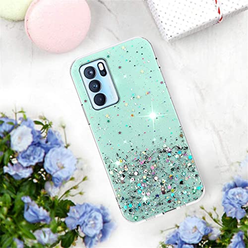 Compatibile con Cover Oppo Reno 6 Pro 5G, Custodia Oppo Reno 6 Pro 5G Glitte, Silicone Protettiva Trasparente Sottile Antiurto Case Rosa Accessori (verde)