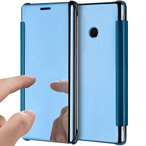 TVVT Compatibile con Cover Huawei Honor View 10 Lite, Specchio Placcatura Pelle Custodia Mirror Leather PU e PC Design Flip con Supporto Funzione Chiusura Magnetica Bumper Case Cover - Blu