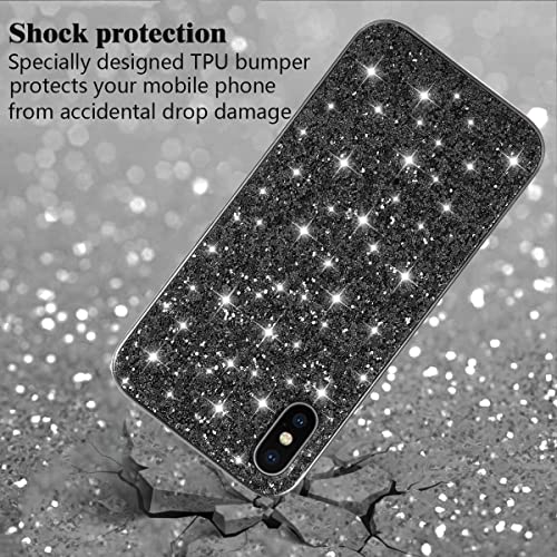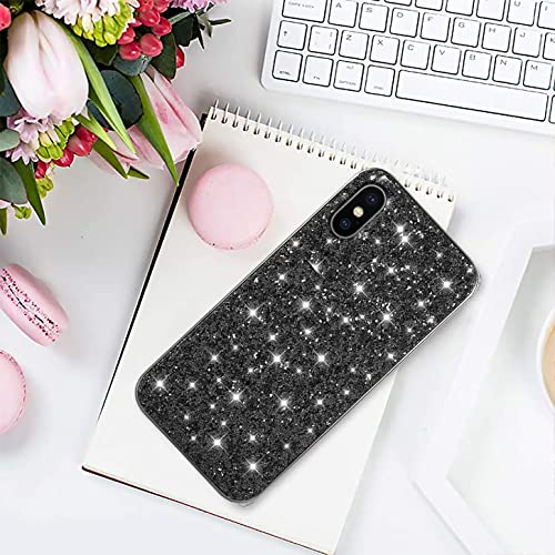 Compatibile con Cover iPhone XS Max Glitter Silicone Antiurto, Custodia iPhone XS Max TPU Sottile Brillantini Protezione Case (Nero)