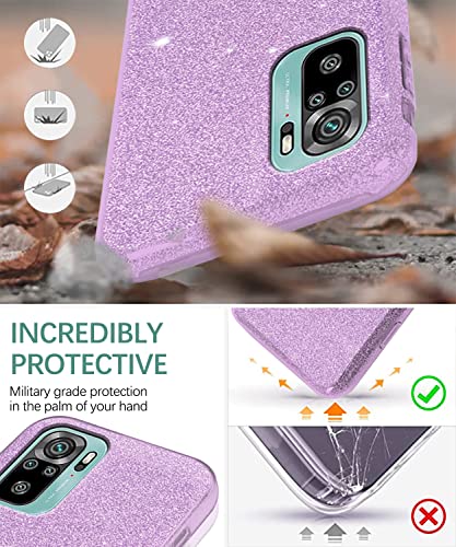 Compatibile con Cover Redmi Note 10 Glitter, Xiaomi Redmi Note 10 Cover Silicone Rosa, 3 in 1 Custodia Redmi Note 10S Glitter Case (Viola, Xiaomi Redmi Note 10s)