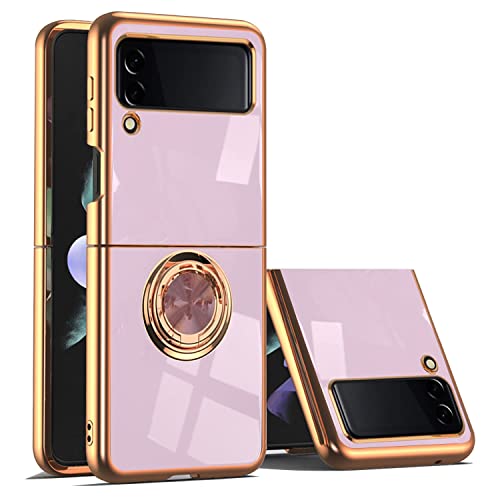 Compatibile con Cover Samsung Z Flip 3 5g con Anello Rosa, Custodia Samsung Z Flip 3 Cover Silicone Antigraffio Case Morbida (Samsung Z Flip 3 5g, Viola)