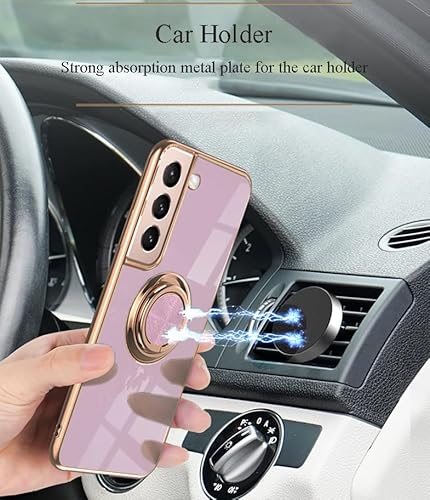 Compatibile con Cover Samsung S21 5g con Anello Magnete, Morbida Custodia Samsung S21 Cover Silicone Antigraffio Case Nero (Samsung S21 4G&5G, Viola)