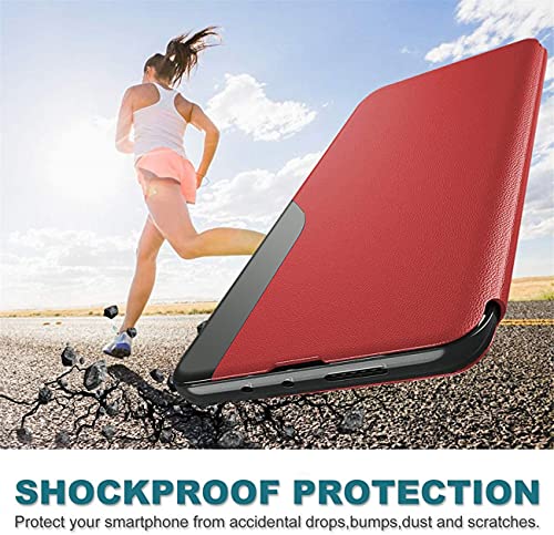 Compatibile con Cover Samsung A21s Rigida in Pelle, Cover a Libro Samsung A21s Case Flip, Custodia Samsung A21s Cover Rigida (Rosso, Samsung A21s)