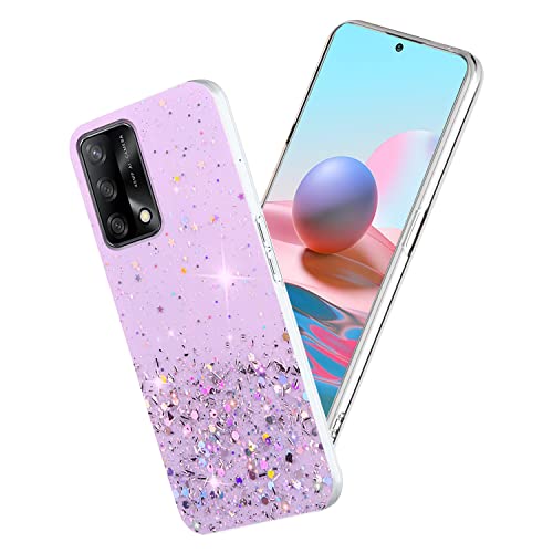 Compatibile con Cover OPPO A74 4G Trasparente Glitter, Bling Bling Brillantini Custodia OPPO A74 Cover Silicone Sottile Case Morbida Rosa (OPPO A74 4G, Viola)