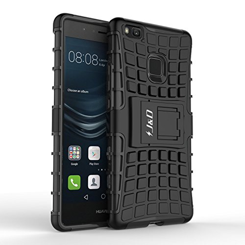 J&D Compatibile per Custodia Huawei P9 Lite, [Cavalletto] [Protezione Robusta] [Doppio Strato] Sottile Adatta Ibrida Antiurta Protettiva Custodia per Huawei P9 Lite - Nero