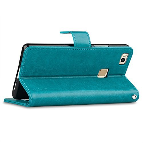 J&D Compatibile per Custodia Huawei P9 Lite, [Portafoglio Stand] [Sottile Adatta] Protettiva Robusta Antiurta Flip Custodia per Huawei P9 Lite - Turchese