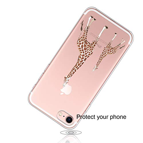 Compatibile con custodia per iPhone 7/8 / SE 2020, SHOUXEIFANG Crystal Clear Silicone Gel Silicone Gel TPU con proteggi schermo in vetro temperato - Giraffa