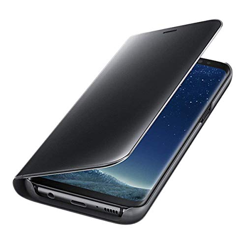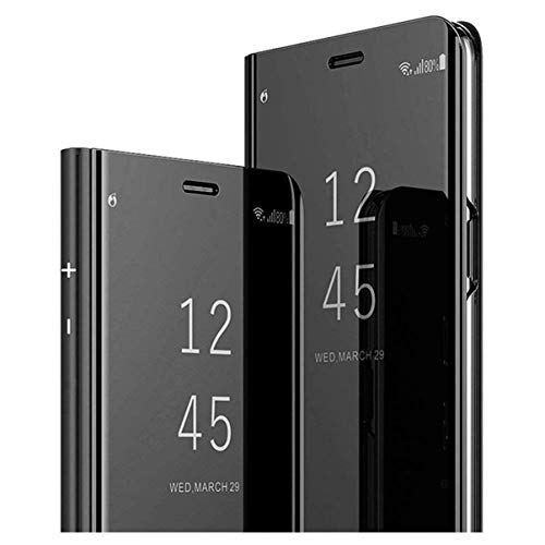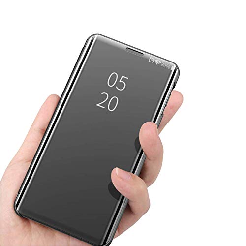 Compatibile Con Custodia Samsung Galaxy A71 Flip Cover Luxury Smart Clear View Placcatura Specchio Case [Mirror Cover] [Funzione Stand] Pelle PU Premium Flip Case (Nero)