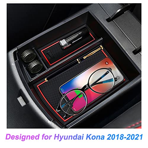 SXCY Compatibile con Hyundai Kona Hybrid N Line 2018-2023 Vano Portaoggetti per Console Centrale Contenitore Kona Organizer da Braccioli Scatola di Immagazzinaggio Hyundai Kona Accessori (Rosso)