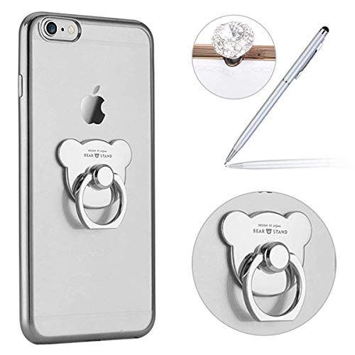 Compatibile con iphone 7 Plus Cover Orso,Orso Anello Silicone Morbido Disegno Anti-Scratch Copertura Protettiva del Supporto Dell'anello Flessibile Bling Case.Argento