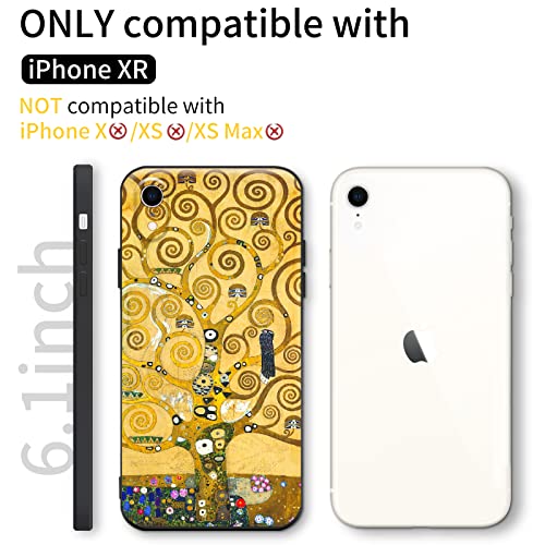 Compatibile con iPhone XR Custodia Premium Silicone Progettata Cover Marrone Fioriture Antiurto Morbido Paraurti AntiGraffio Vieni con una protezione per lo schermo (Gustav Klimt-Albero della vita)