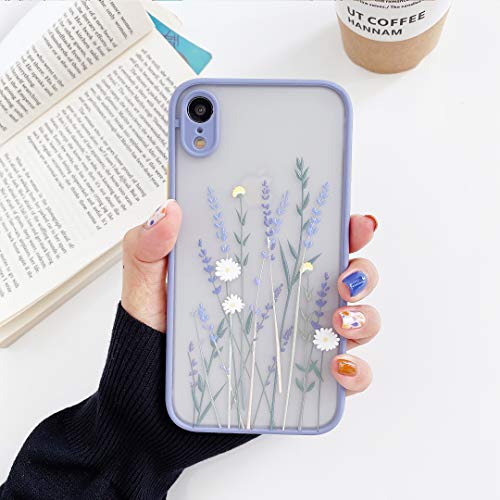 Compatibile con iPhone XR per ragazza donna, motivo floreale floreale design sottile, retro in PC rigido protettivo con morbida custodia antiurto in TPU per iPhone XR-viola