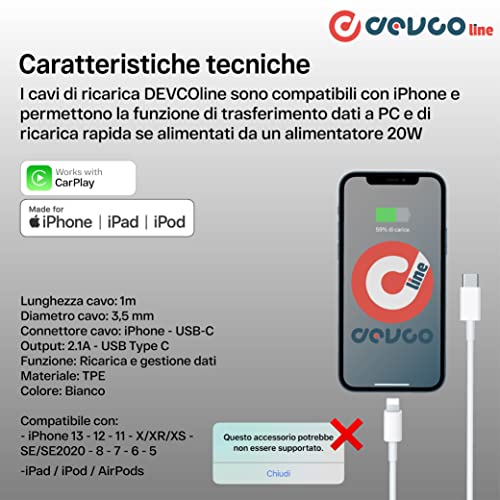 Echo ENG Cavo USB Compatibile con iPhone Ricarica Rapida Carica Connettore iPhone e USB-C Type C Materiale in Gomma TPE Colore Bianco Lunghezza 1m 1 metro - DEVCOline - AT CR IPC1