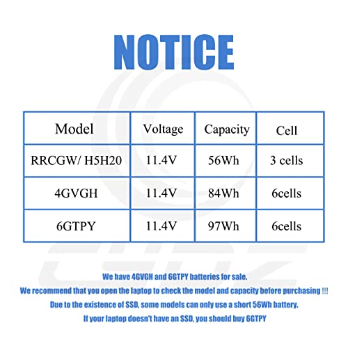 CYDZ Compatibile con Dell Latitude Laptop Batteria 6GTPY 5XJ28 5D91C 5041C 05041C GPM03 0GPM03 6-Cell 97W 11,4V P56F001 P56F002
