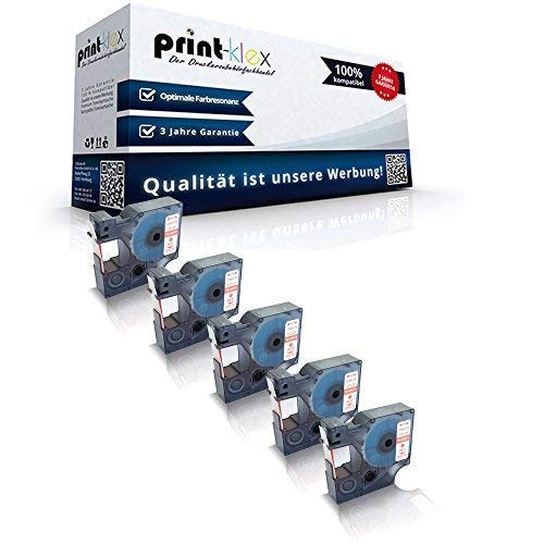 5x Compatibile Nastri Scrittura per Dymo D1 45015 Labelmanager350Series Labelmanager360D Labelmanager400 Labelmanager420P S0720540 7 M x 12 mm Nylon Band Rosso/Bianco - Colore Serie
