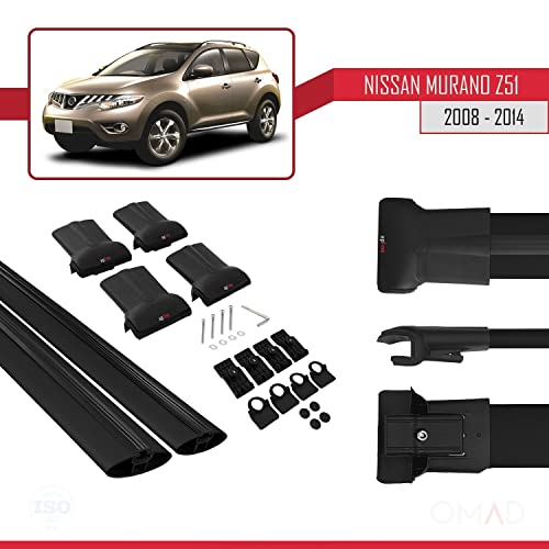 Omad Compatibile con Nissan Murano (Z51) 2008-2014 Barre Portatutto FLY Modella Portapacchi Barre Tetto NERO