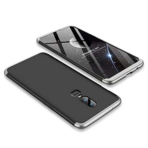 Smfu Compatibile Oneplus 6 Custodia Anti-graffio Antiurto Cover Rigida Paraurti Ultra-Sottile 360 Gradi Protezione Custodia Cover PC 3 in 1 Case (Nero argento) Con Vetro Temperato 2 Pezzi