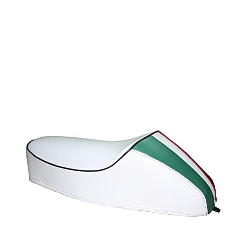 COMPATIBILE CON PIAGGIO VESPA 50 SPECIAL 1976 76 SELLA BIANCA DIEFFE SEMILPELLE CON TELAIO A MOLLE ELICOIDALI IMBOTTITURA IN SPUGNA GOBBA TRICOLORE