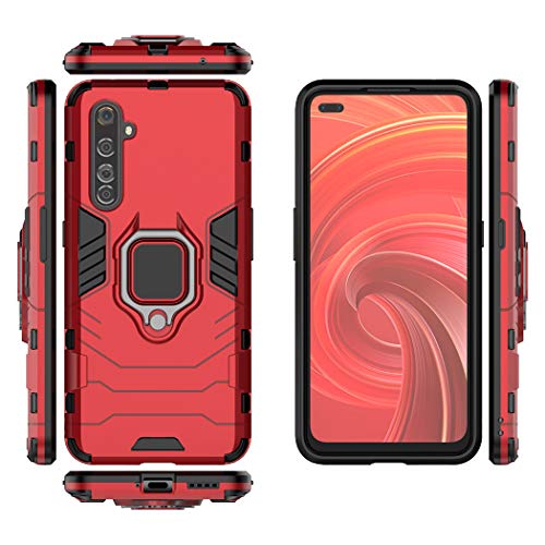 Compatibile con OPPO Realme X50 Pro 5G Cover, Custodia Armor Anello Cavalletto (Funziona con il Supporto Magnetico per Auto) Case Paraurti (Rosso)