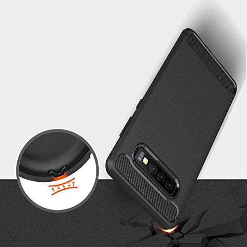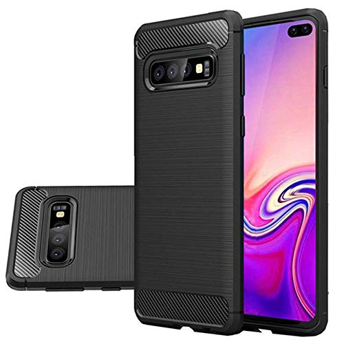 Compatibile per SAMSUNG Galaxy S10 Plus (G975) Copertura tasti CUSTODIA COVER GEL silicone TPU MORBIDA CARBON Fiber ANTIURTO antigraffio (Nero)