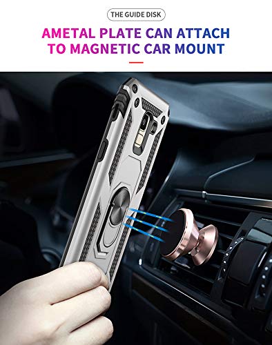 Compatibile con Samsung Galaxy J6 2018 Cover Custodia Armor Anello Cavalletto Resistente Hybrid Dual Layer Armatura Defender PC + TPU Custodie con Supporto (Rose)
