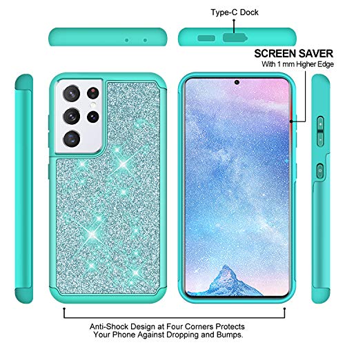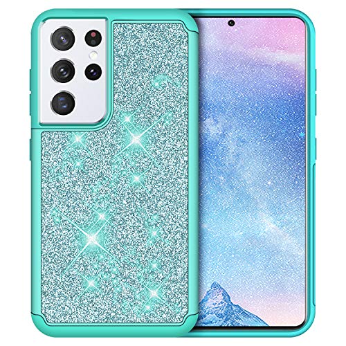 J&D Compatibile per Samsung Galaxy S21 Ultra Cover, Luccicante Sottile Protezione Robusta Protettiva Custodia per Galaxy S21 Ultra, Non per Galaxy S21/S21+/S21 Plus, Turchese