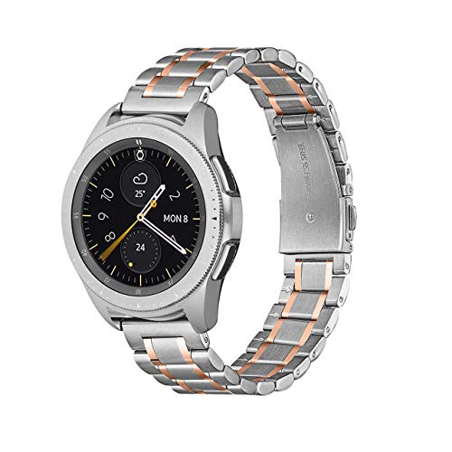 Compatibile con Samsung Galaxy Watch 46 mm/Samsung Watch 3 45mm/S3 Classic/Gear S3 Frontier/,22 mm in acciaio inox metallo cinturino di ricambio (22 mm, argento/oro rosa)