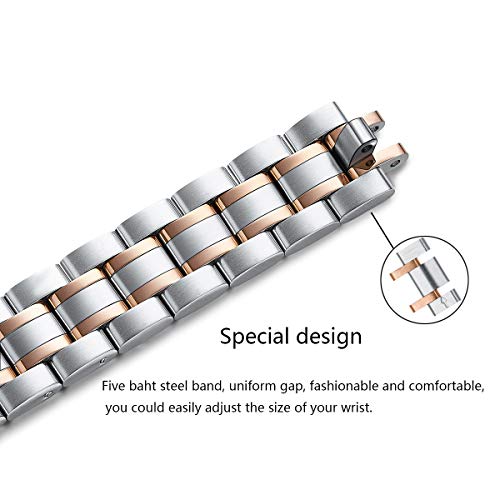 Materiale di alta qualità: è realizzato in acciaio inossidabile di alta qualità e durevole attraverso un processo speciale, che rende il polso comodo quando indossato. Il raffinato design artigianale rende il cinturino lussuoso. Puoi indossarlo in ogni occasione e farti sembrare nobile.