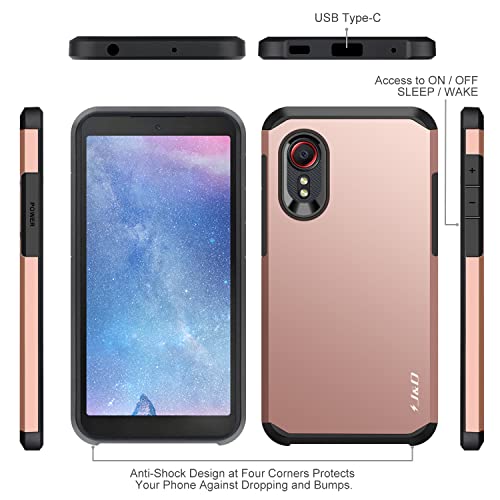 J&D Compatibile per Samsung Galaxy Xcover 5 Cover, Protezione Robusta Armatura Ibrida Antiurta con 2 Pezzi Vetro Protezione Schermo Protettiva Rigido Custodia per Galaxy Xcover 5, Rosa Oro