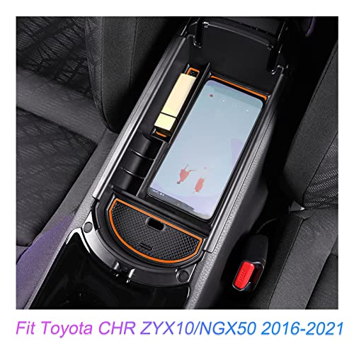 SXCY Compatibile con Toyota CHR C-HR, contenitore portaoggetti per console centrale, organizer per braccioli, vano portaoggetti per auto, accessori CHR 2016-2022 2023 (arancione)