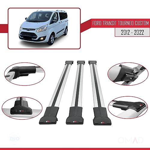 Omad Compatibile con Ford Transit Tourneo - Custom 2012-2022 Barre Portatutto FLY Modella Portapacchi Barre Tetto 3 PEZZI GRIGIO