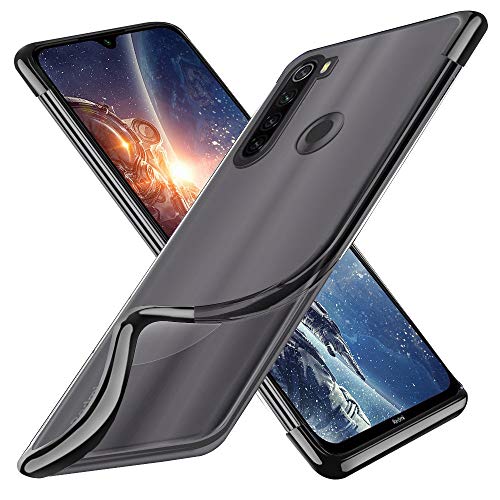 Compatibile per XIAOMI REDMI NOTE 8T (8T) copertura tasti Custodia Cover ELECTROPLATING cornice alluminio GEL SILICONE TPU morbida PROTEZIONE soft slim case fondo TRASPARENTE (Nero)