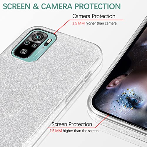 Compatibile con Xiaomi Redmi Note 10 Cover Silicone, Cover Redmi Note 10 Glitter Rosa, 3 in 1 Custodia Redmi Note 10 Cover Redmi Note 10s Case Glitter (Argento, Xiaomi Redmi Note 10 4G)