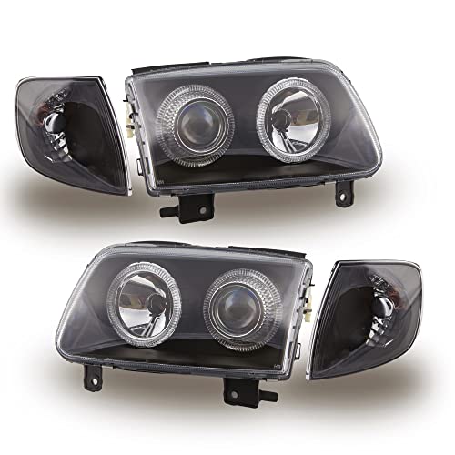 Fari compatibili con Volkswagen Polo 6N2 1999 2000 2001 GV-1648 Luci Anteriori Auto Lampade Fari Fari Driver e Lato Passeggero Set Completo Faro Montaggio Angel Eyes Nero