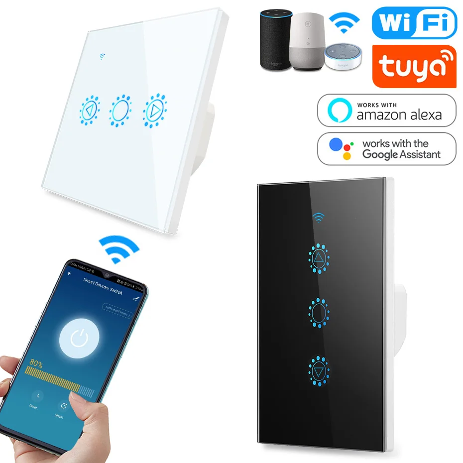 110V 220V Compatible Alexa Google Home Voice Control Dimmer Switch US EU Dimming Glass Panel Wifi Smart Light Touch Switch