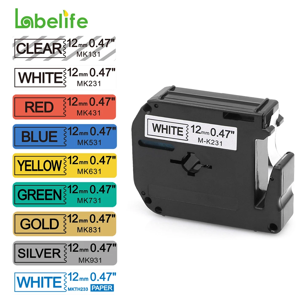 1PC Compatible for Brother M-K231 MK231 MK 231 MK-231 Black on White 12mm Laminated strong adhesive label tapes for PT-80 PT-70