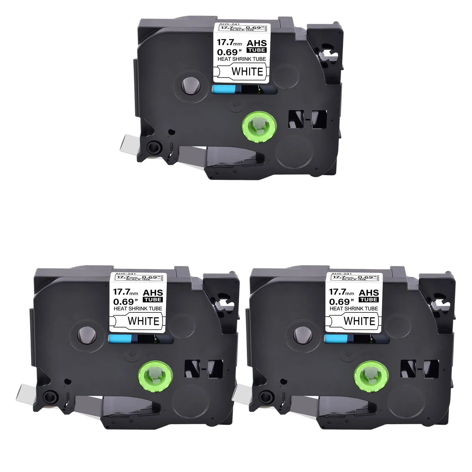 3PK Compatible with Brother P-Touch HSe-241 Heat Shrink Tube Replacement Black on White 17.7 mm x 1.5 m Tape Cassette Label