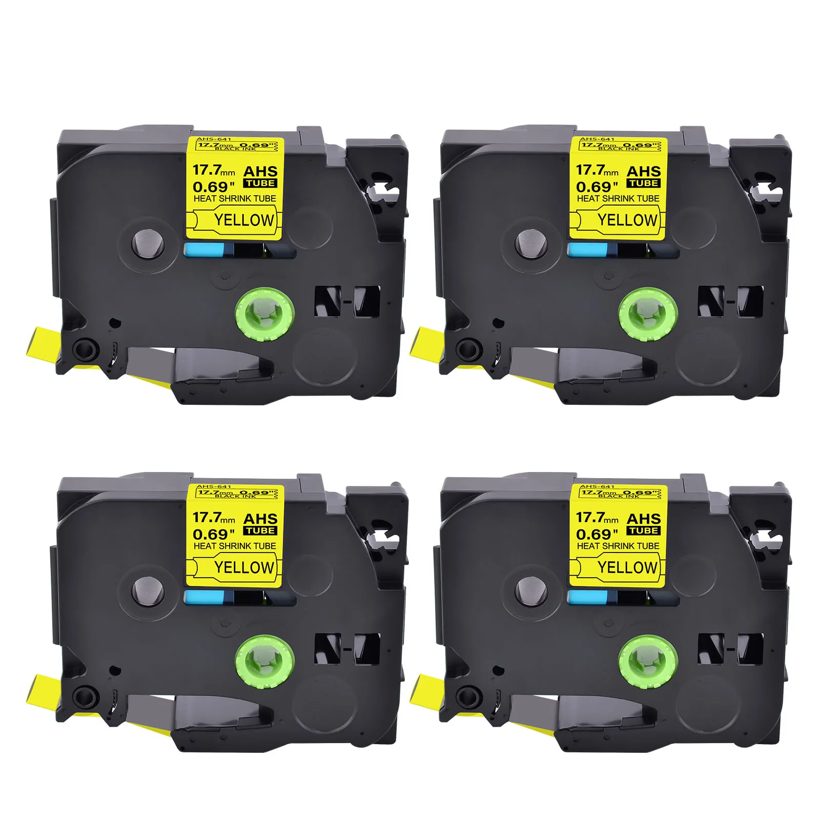 4PK Compatible with Brother P-Touch HSe-641 Heat Shrink Tube Replacement Black on Yellow 17.7 mm x 1.5 m Tape Cassette Label